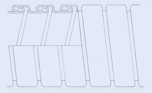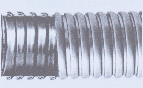 一重山螺旋管とインターロック型螺旋管の中間の強度・柔軟性を持ち近来螺旋管の中心となり重要な各種リード線の保護管として使用されております。また、ファイバーの保護管としても使用されております。